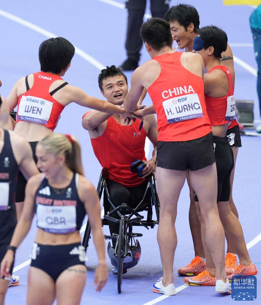 9月6日,在巴黎残奥会田径项目4X100米混合接力预赛中,由周国华、王浩、文晓燕和胡洋组成的中国队以45秒09的成绩晋级决赛,并打破世界纪录。